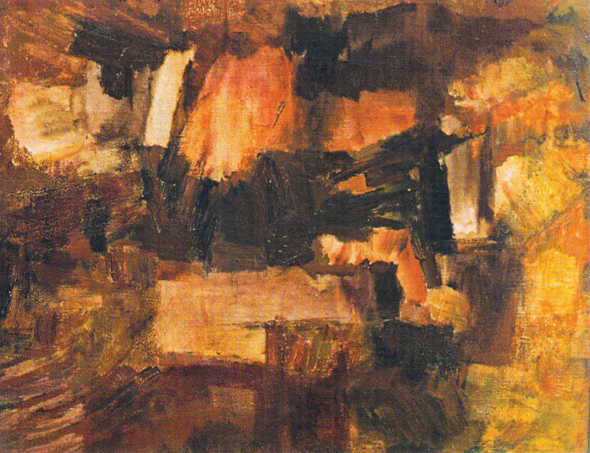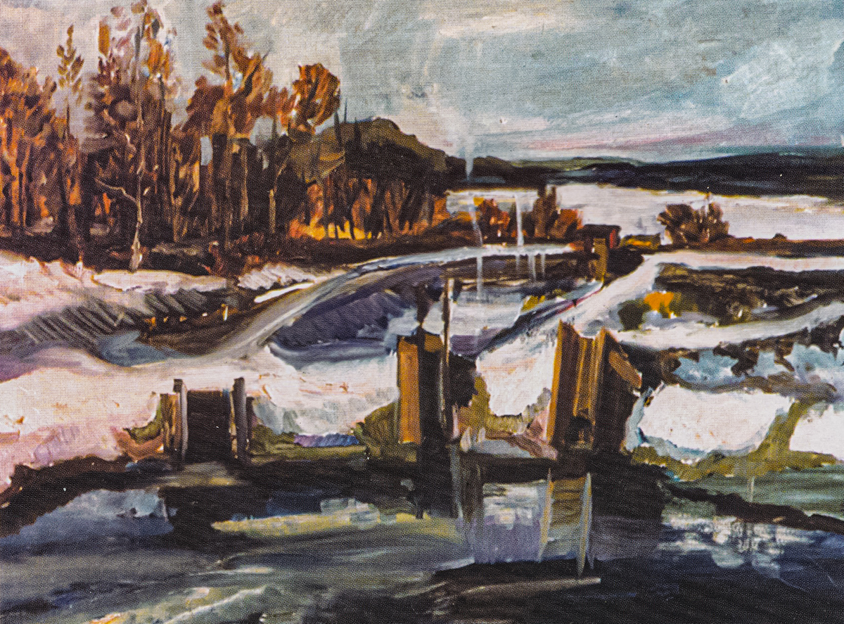 - Drewno w rębalni, 1966, olej na płycie 39×48 cm