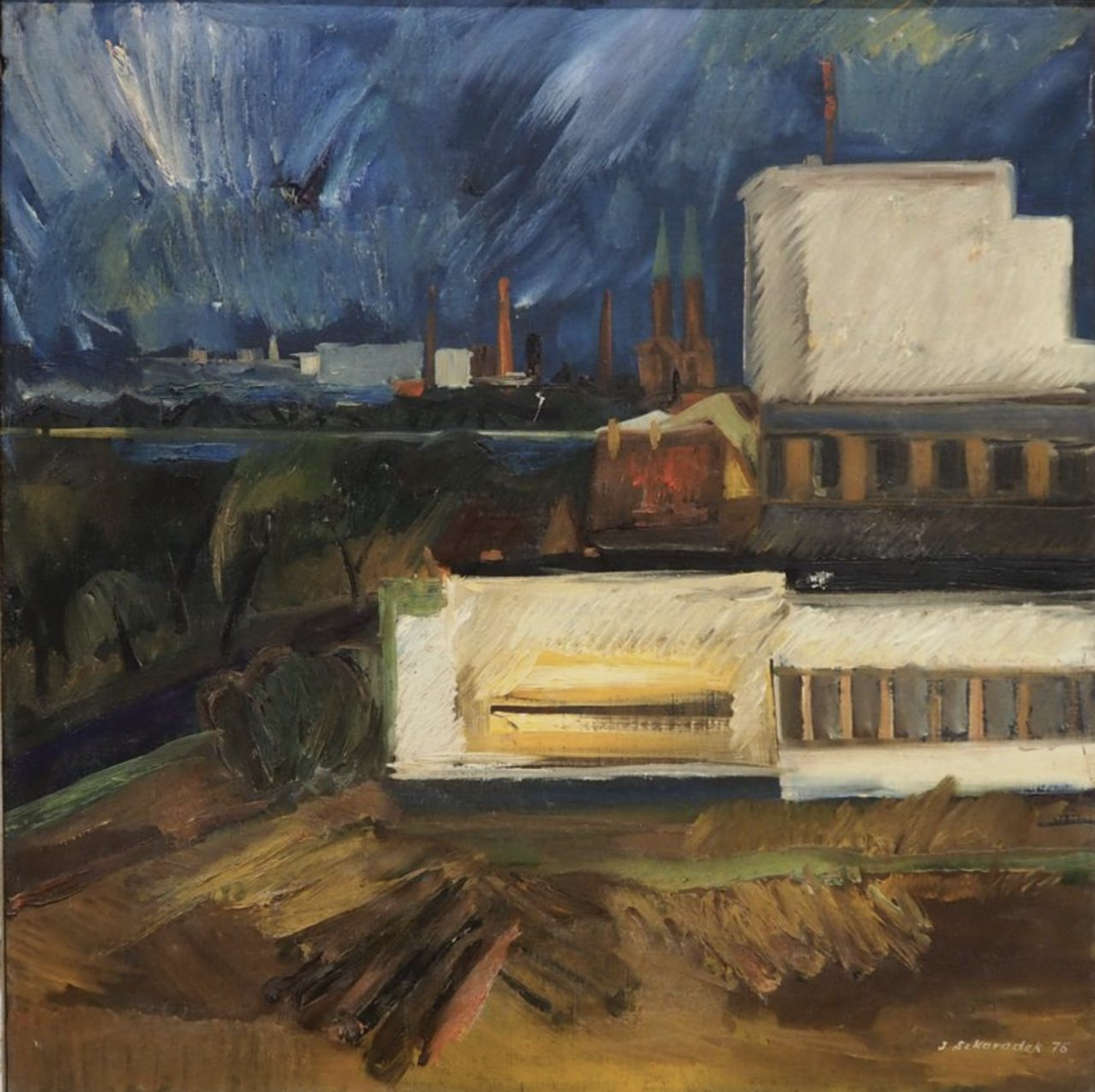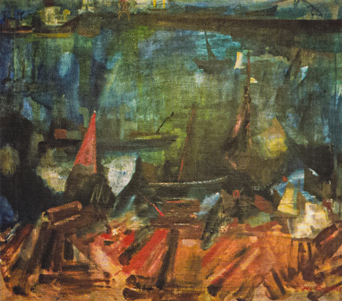 - Stocznia, 1970, olej, płótno, 75,5×85,5 cm