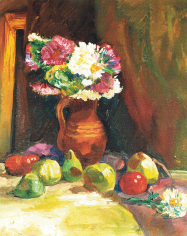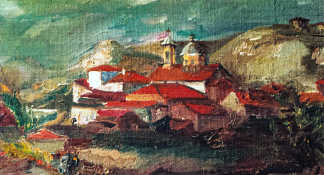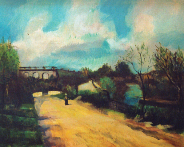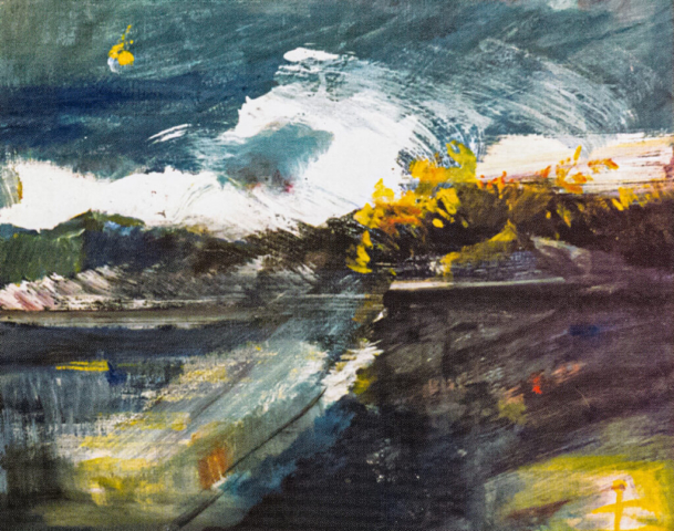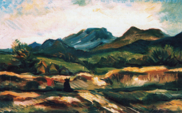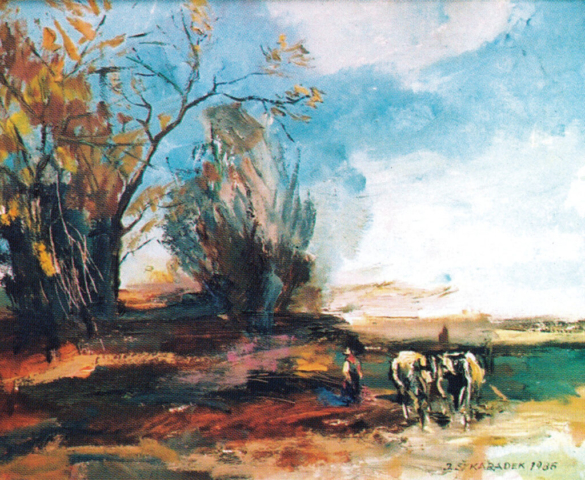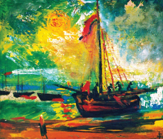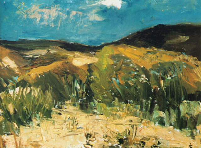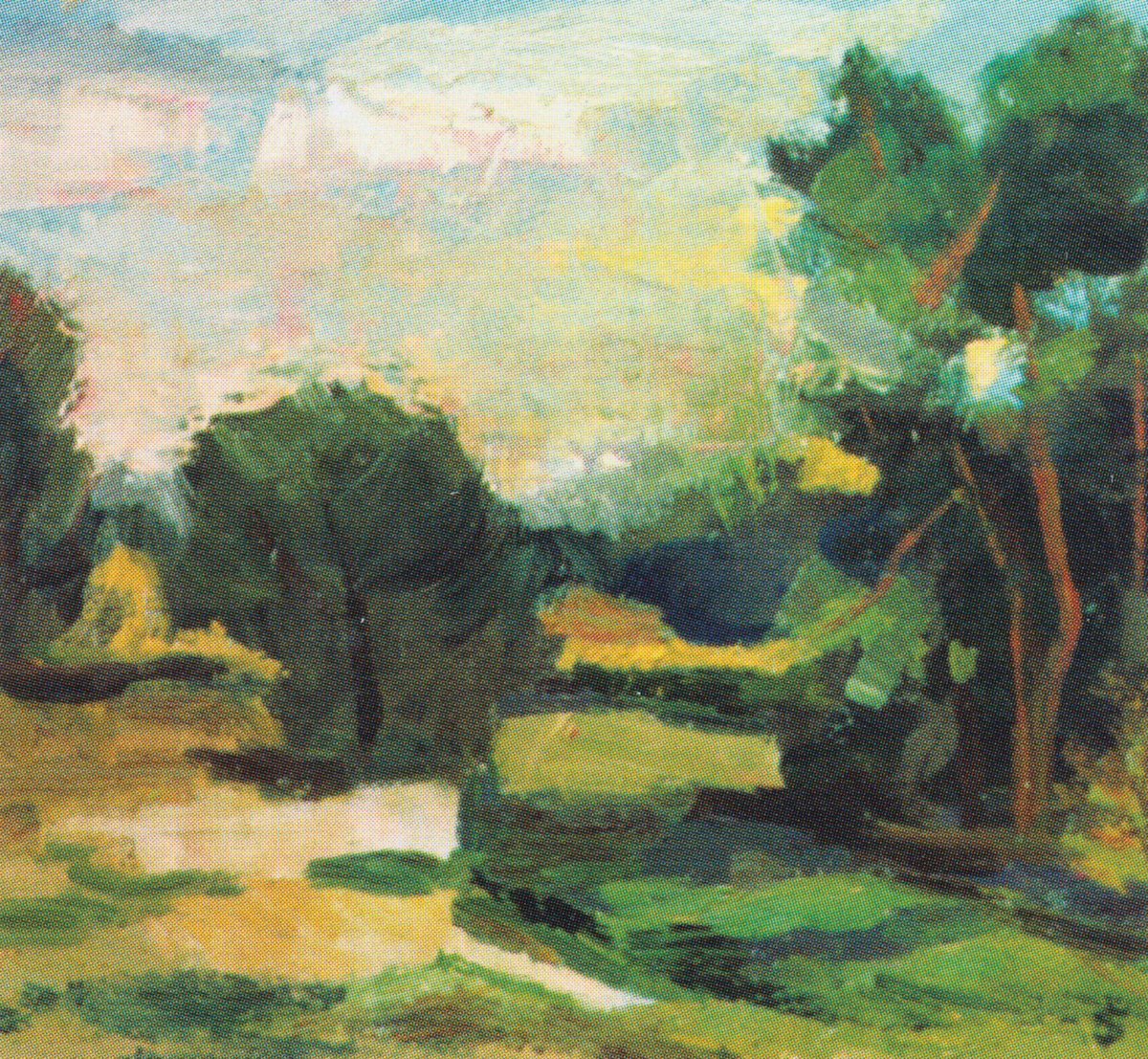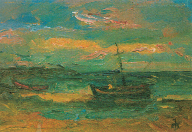 - Pejzaż ze słońcem, 1960, olej, płótno 37,5×50,5 cm