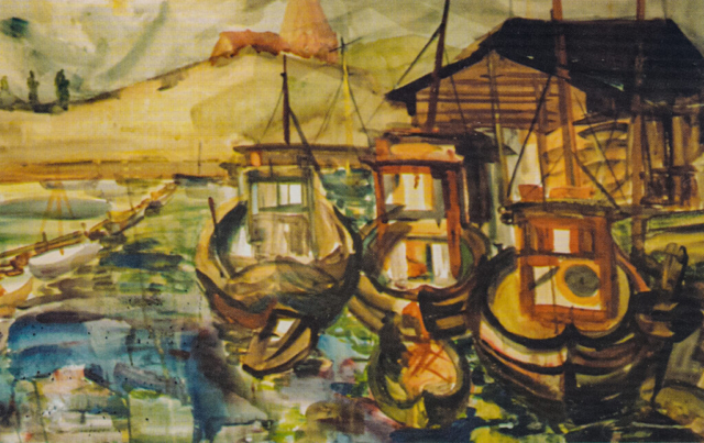 - Port rybacki II, 1976, akwarela, gwasz, papier 59×90 cm