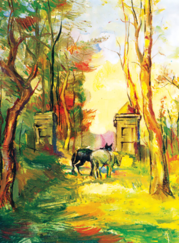 - Na pastwisku, akryl na płótnie 111×135 cm